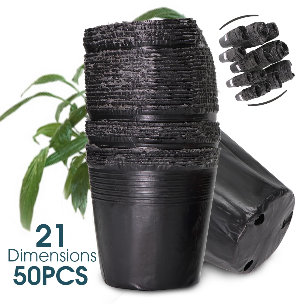 50pcs Plastic Nursery Pots 21 Size Flower Plant Container Garden Seed Starting Planter Breathable Grow Bag For Seedling Cuttings Aliexpress